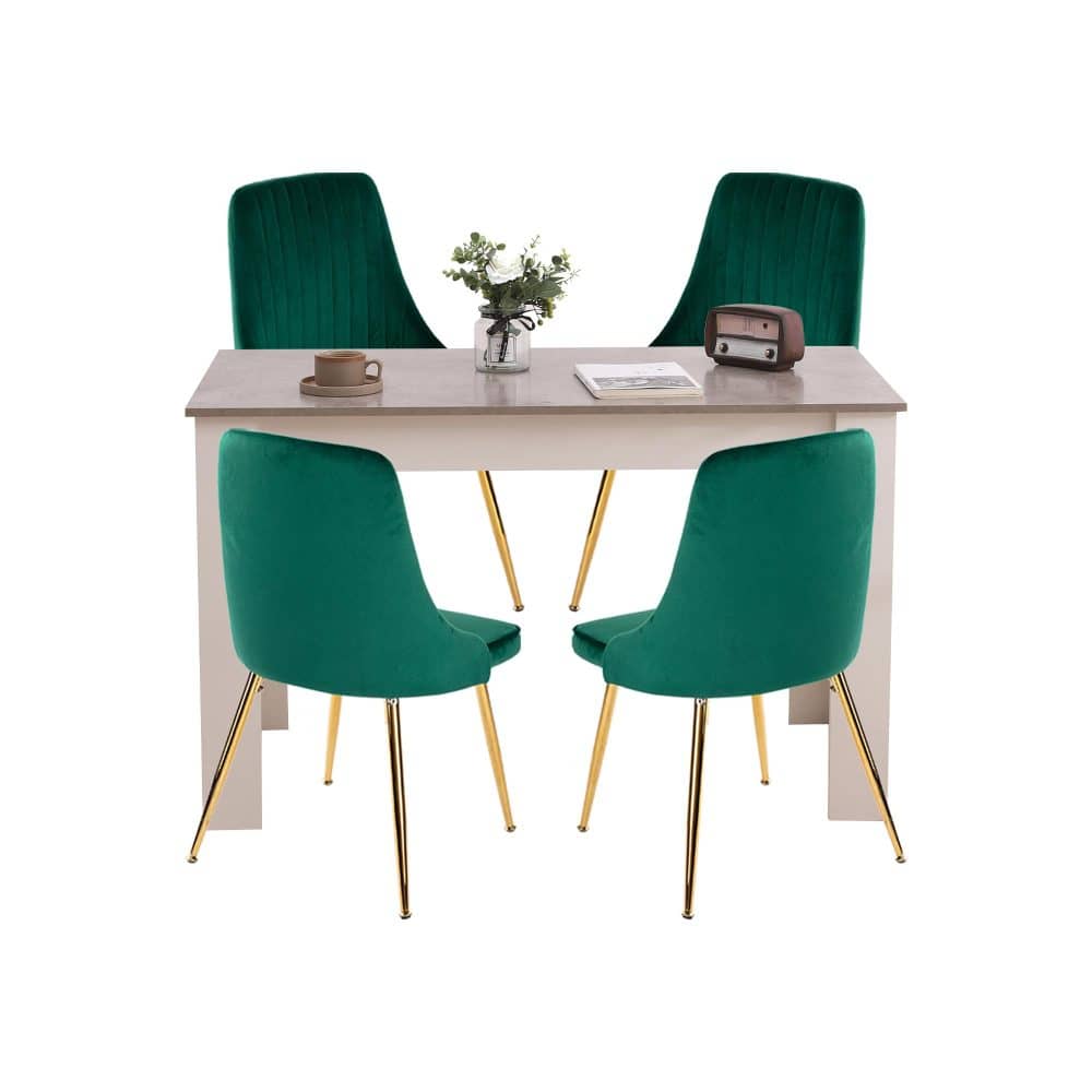 Grey Rectangular Table with Green Velvet Chairs Dining Set
