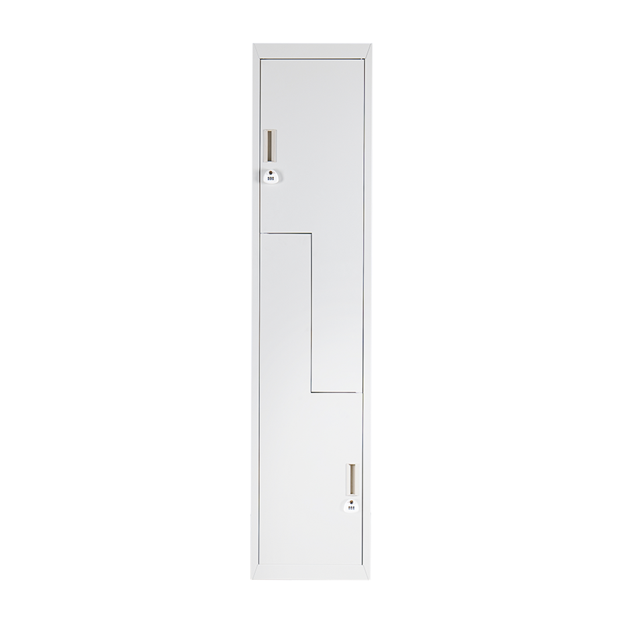 - 2 vertically stacked L-shaped locker compartments