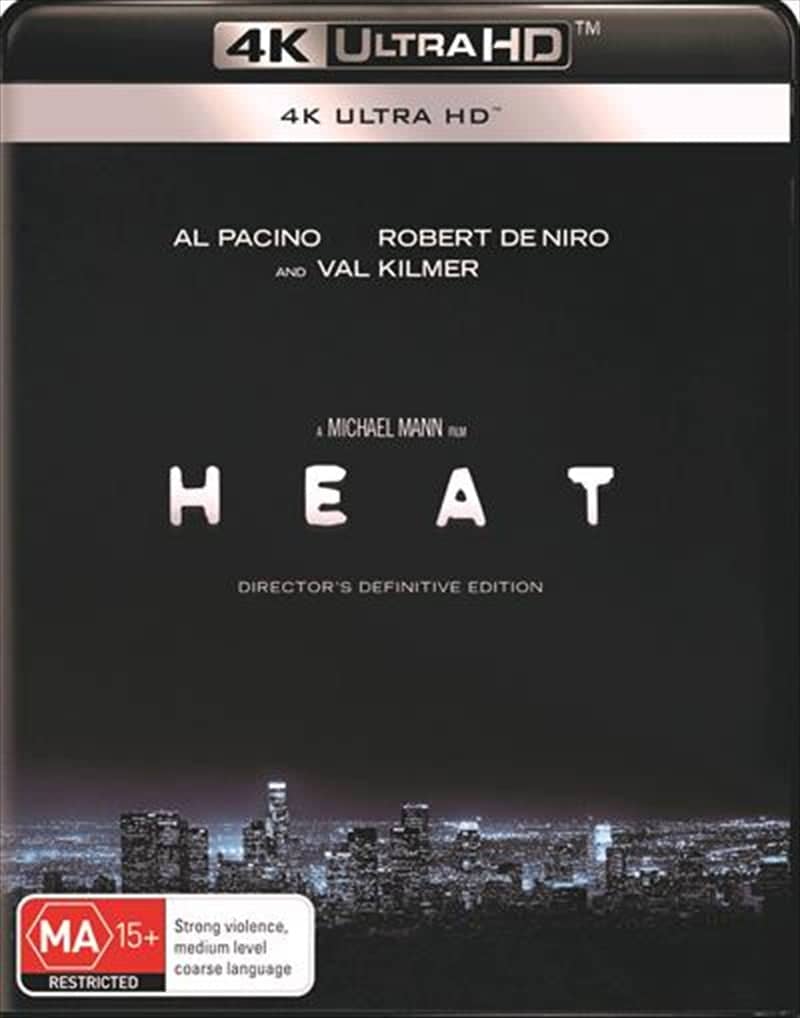 A group of professional bank robbers start to feel the heat from police when they unknowingly leave a clue at their latest heist. When Al Pacino and Robert De Niro square off, Heat sizzles. Written and directed by Michael Mann, Heat includes dazzling set pieces and a bank heist that USA Today calls 'the greatest action scene of recent times.' It also offers 'the most impressive collection of actors in one movie this year' (Newsweek). Val Kilmer, Jon Voight, Tom Sizemore and Ashley Judd are among the memorable supporting players in this tale of a brilliant L.A. cop (Pacino) following the trail from a deadly armed robbery to a crew headed by an equally brilliant master thief (De Niro). Heat goes way beyond the expectations of the cops-and-criminals genre - and into the realm of movie masterpiece.
