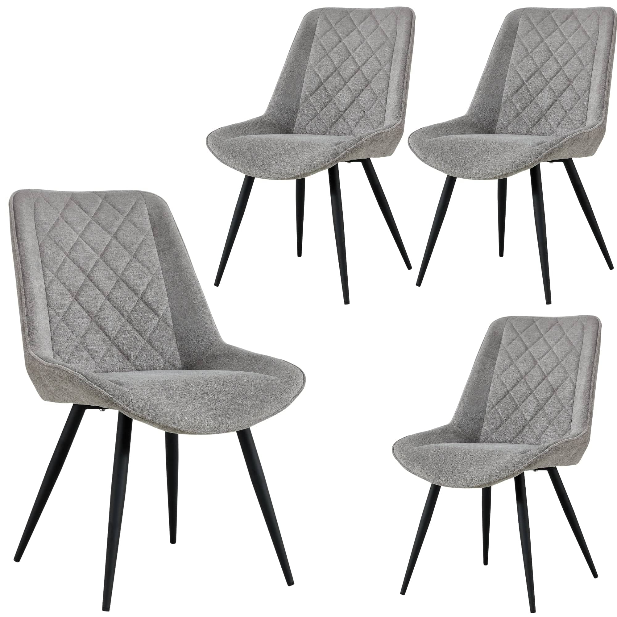 Comfortable dining chairs make cosy dining areas. To enjoy this cosiness, add this beautiful 4-piece dining chair set to your dining area. Designed in the Scandinavian style, the chairs are upholstered in polyester fabric and have strong, tapered, black legs made of black powder-coated steel. A padded back makes them even more comfortable, giving them a unique look. The chairs look stunning in all decor settings, thanks to their inviting shape and granite-coloured fabric upholstery. A metal frame gives them great strength. A one-year warranty is included with the fully assembled chairs.