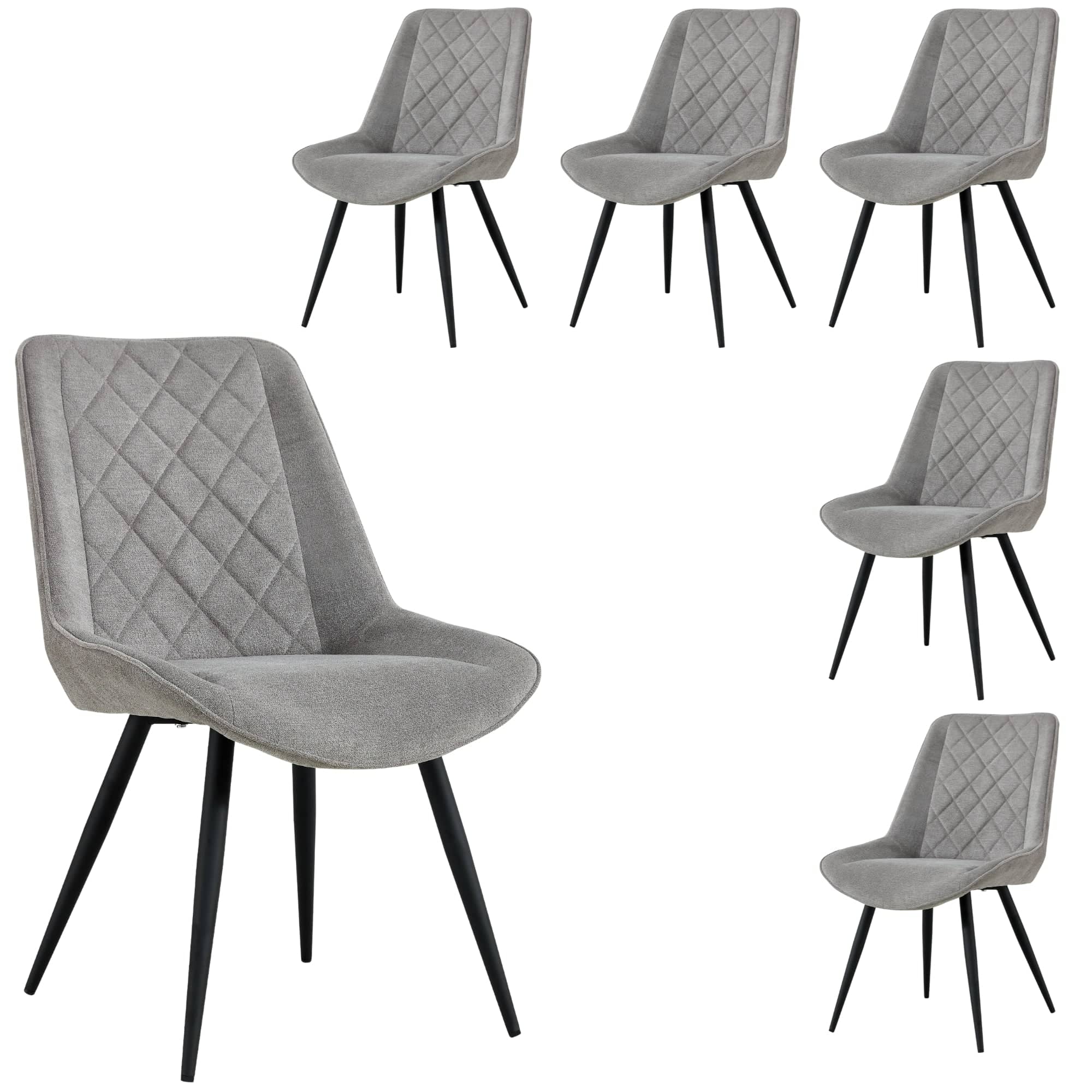 Helenium Dining Chair Set of 6 Fabric Seat with Metal Frame - Granite
