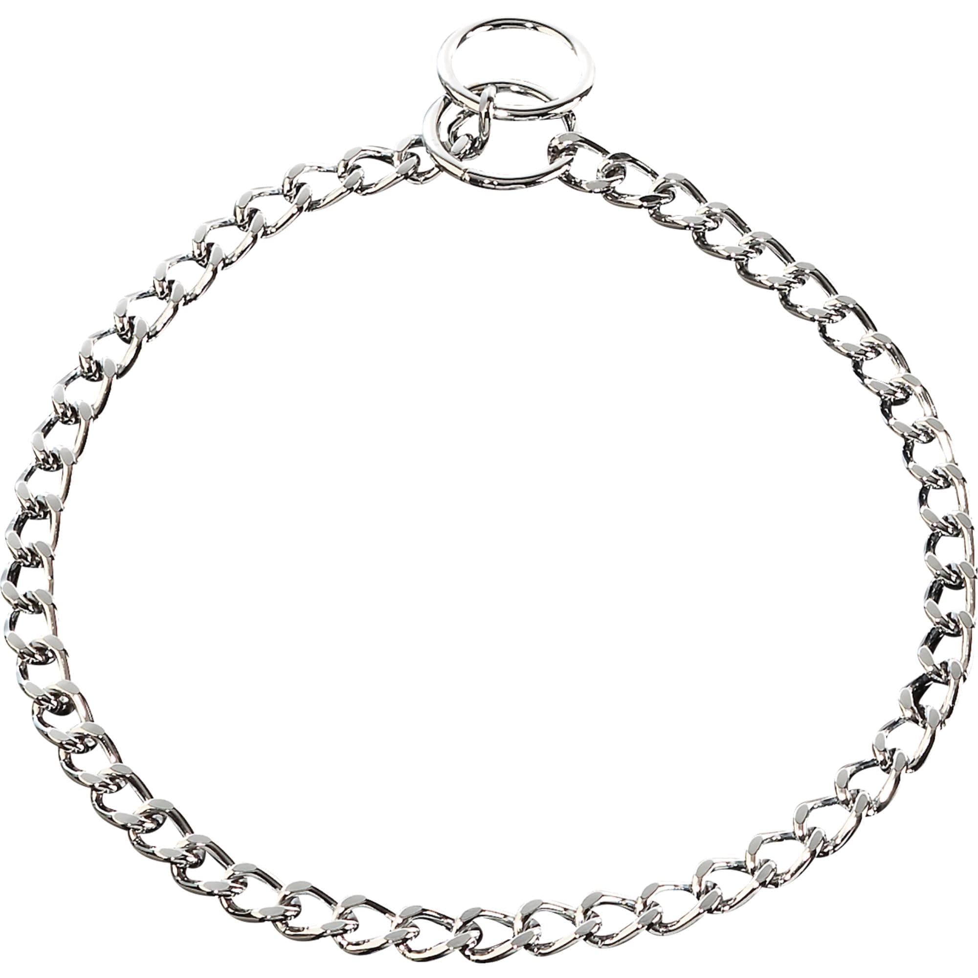 The Herm Sprenger Chrome Flat Links are part of our Specialized range of chain collars, the flat link style has a flat surface apparently filed onto the top & bottom of each link, this causes the chain to catch the light as the dog moves around presenting a jeweled appearance, often used for dog showing & just as often used by doggie show-offs. Each mm link thickness is suitable for different uses. Herm Sprenger Chrome Flat Links 2.5mm check chains are the one of our average and most popular sizes available. Suitable for small to medium dog breeds these chains are often used for dog training and by the everyday dog owner. About the finish: Chrome Plated chains undergo first nickel, and then chromium plating to produce that strong metal shine. Link Thickness 2.5mm Chain Length 35cm, 40cm, 45cm, 50cm, 55cm, 60cm, 65cm