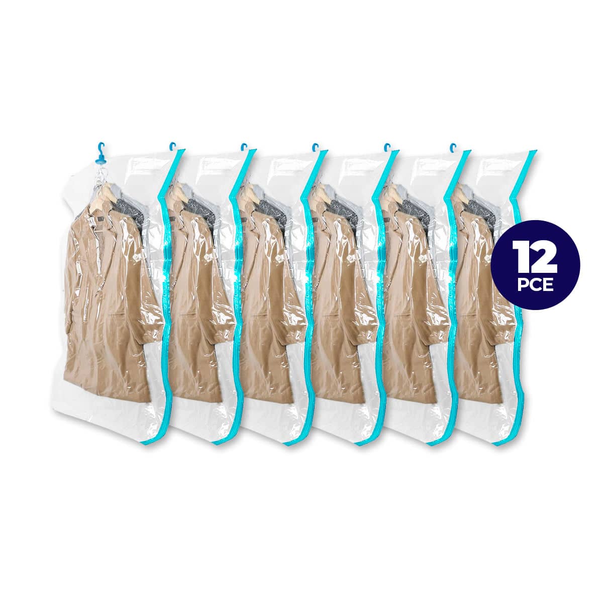 Home Master 12PCE Hanging Vacuum Storage Bag Re-Usable Space Saver 70 x 145cm