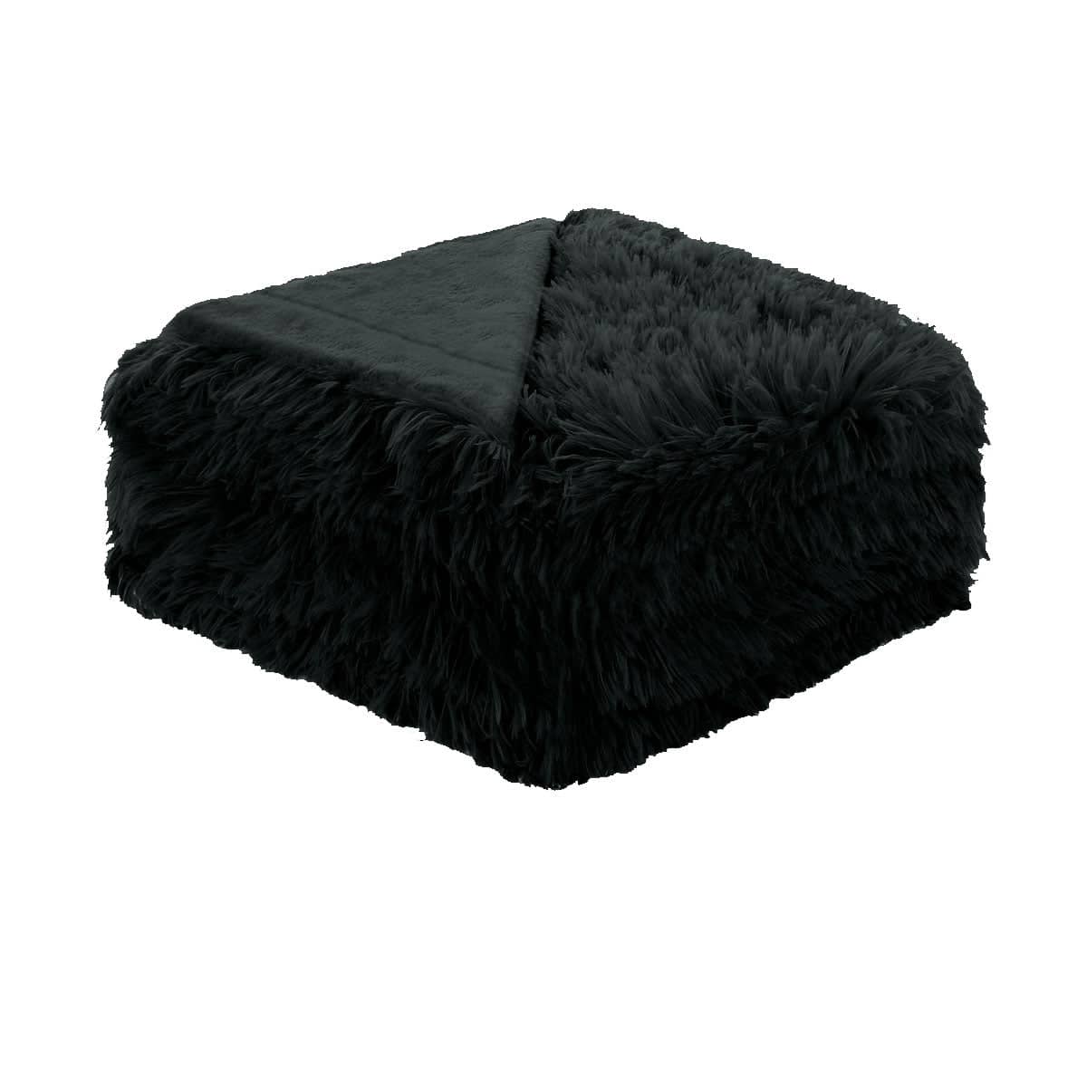 Hotel Living Soft Shaggy Long Hair Blanket King Black