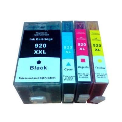 Set contains the following Premium Generic Cartridges : 1 x HP920XXL Black, 1 x HP920XL Cyan, 1 x HP920XL Magenta, 1 x HP920XL Yellow