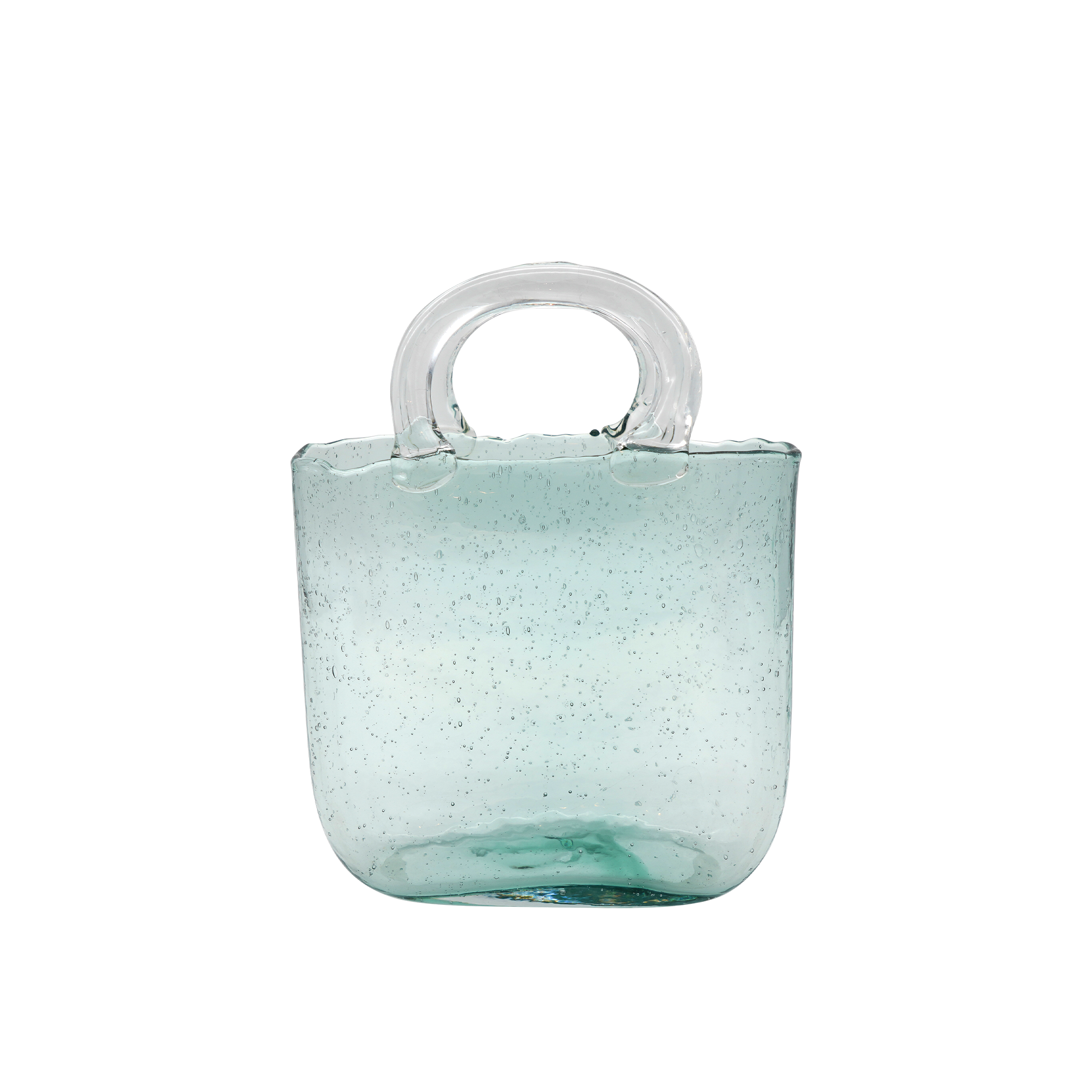 Crafted from transparent bubble-embellished glass, the Ikebukuro Bag Vase can be used as a vase, a decorative object or even a fish tank.