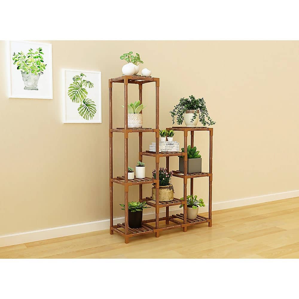Indoor Outdoor Garden Plant Stand Planter Flower Pot Shelf Wooden Shelving - 9 Shelves