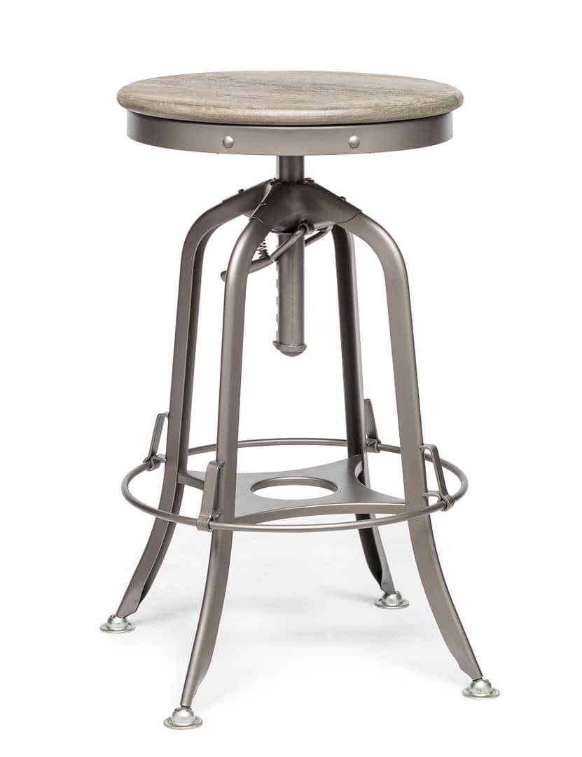 Industrial Height Adjustable Swivel Bar Stool with Oak Wood Top - Grey Finish