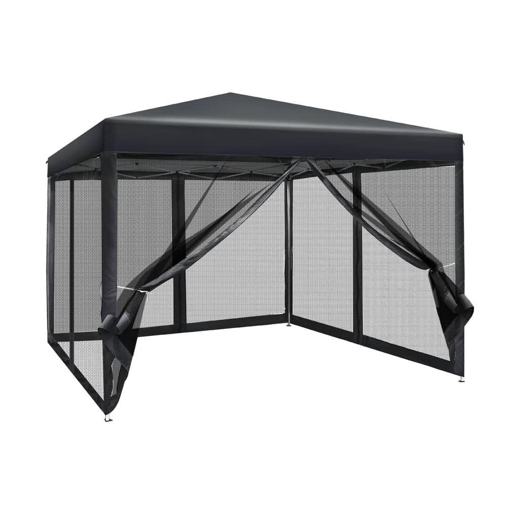 Instahut Gazebo Pop Up Marquee 3x3 Wedding Side Mesh Wall Outdoor Gazebos Black
