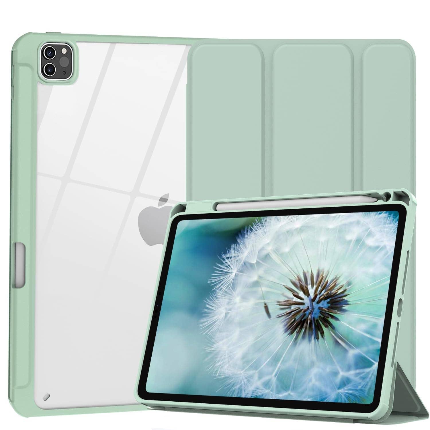 iPad Pro 11 Inch 2020-2022 Soft Tpu Smart Premium Case Auto Sleep Wake Stand Clear Cover Pencil holder Green
