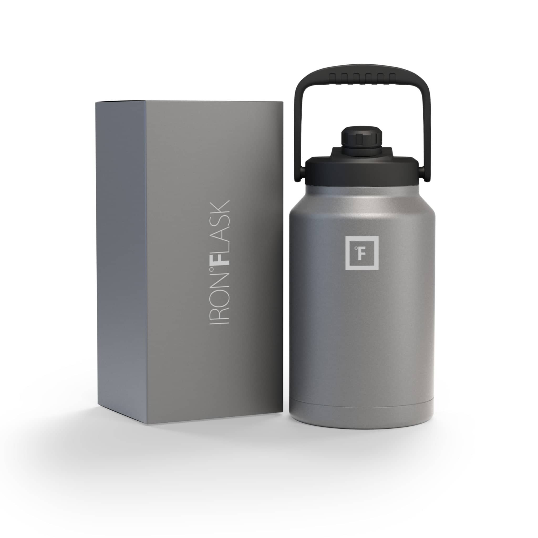 Iron Flask Bottle with Spout Lid, Graphite, 128oz/3800ml. Whoever said “bigger isn’t always better” obviously never got their hands on an Iron Flask One-Gallon Water Bottle. This titan of thirst quenching holds a whopping 128 oz of your favorite beverage in a vacuum-insulated, rough-and-tumble container that can stand up to any adventure. And with a huge array of colors, it’s easy to match your bottle to your personal brand. With the Iron Flask 128 oz water bottle, the only thing you need to worry about is how close you are to a bathroom.