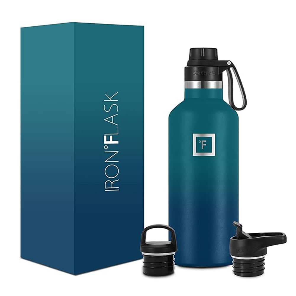 Iron Flask Narrow Mouth Bottle with Spout Lid, Dark Night, 32oz/950ml - The Iron Flask 32 oz Narrow Mouth Bottle With Spout Lid is the gold standard for water bottles. It’s made from the highest-quality stainless steel and features double-wall vacuum insulation for beverages that stay just the temperature you like (24 hours of icy cold drinks and 12 hours of piping hot drinks). The leak-proof spout lid and narrow mouth make it easy to sip, gulp, or store, and we also included a flip lid and a screw-on lid ‘cause we know how important it is to have extra options.