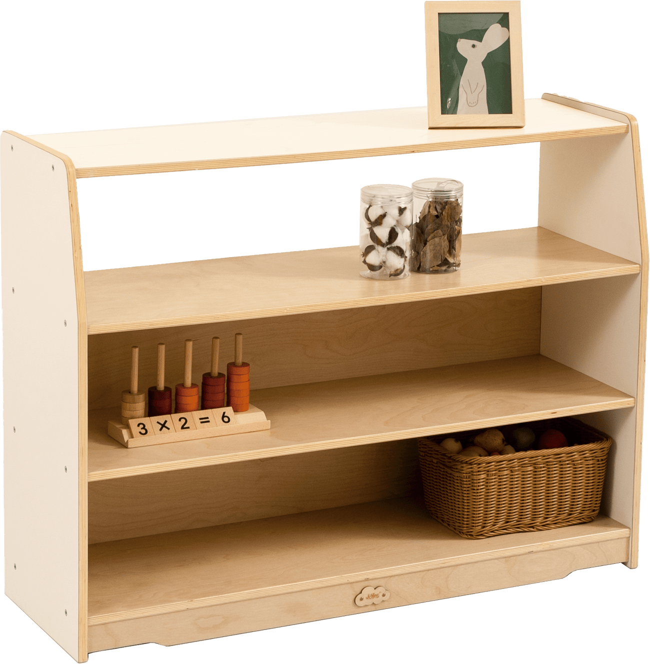 The Goteborg 3-shelf cabinet craft with a see-through top shelf and 2 shelves underneath with a backboard. It’s a room divider, storage cabinet, and a display shelf for books, toys, and learning resources. Help educators and parents create a separated and dynamic space by combining it with our other cabinets.