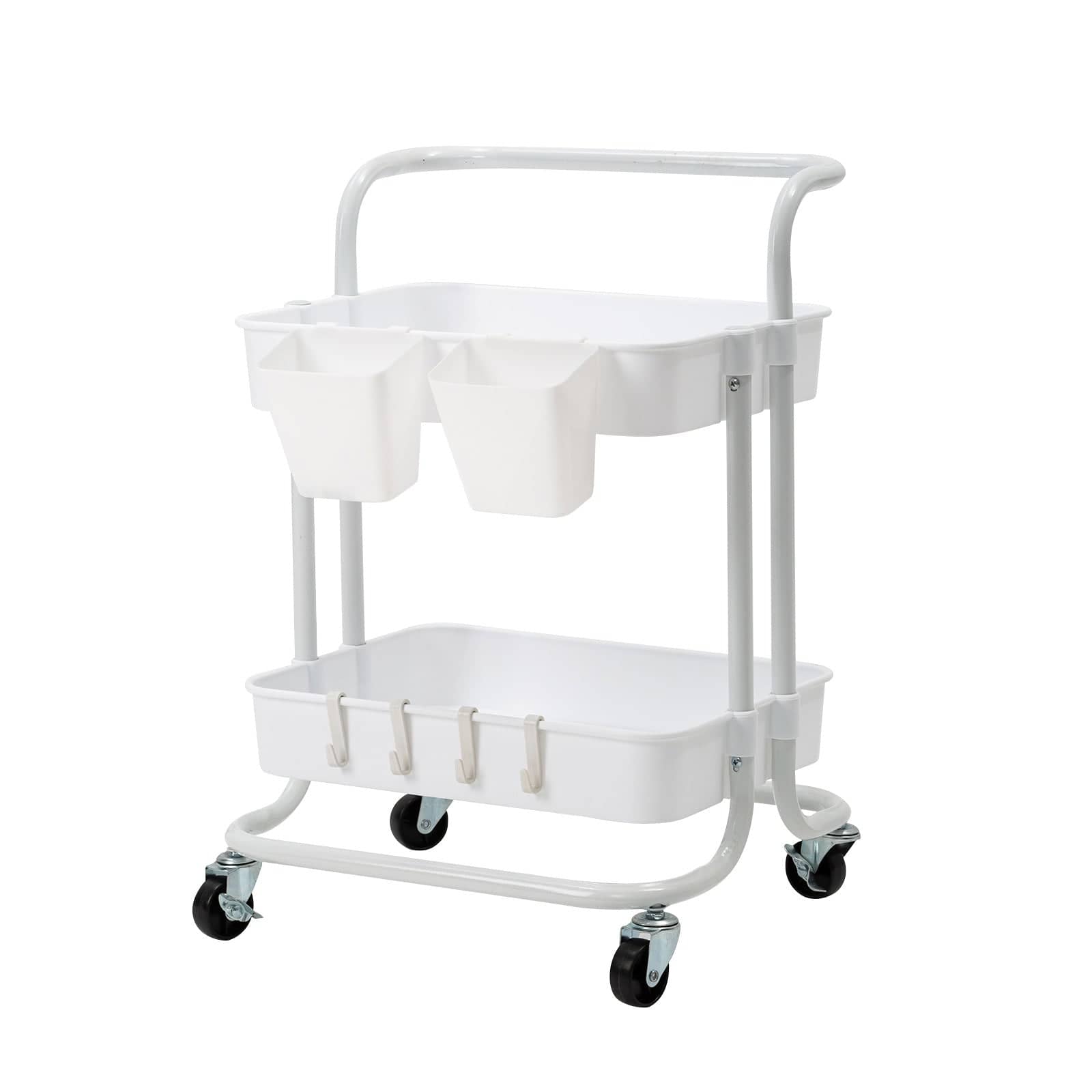 Kandoka 2 Tier White Trolley Cart Storage Utility Rack Organiser Swivel Kitchen