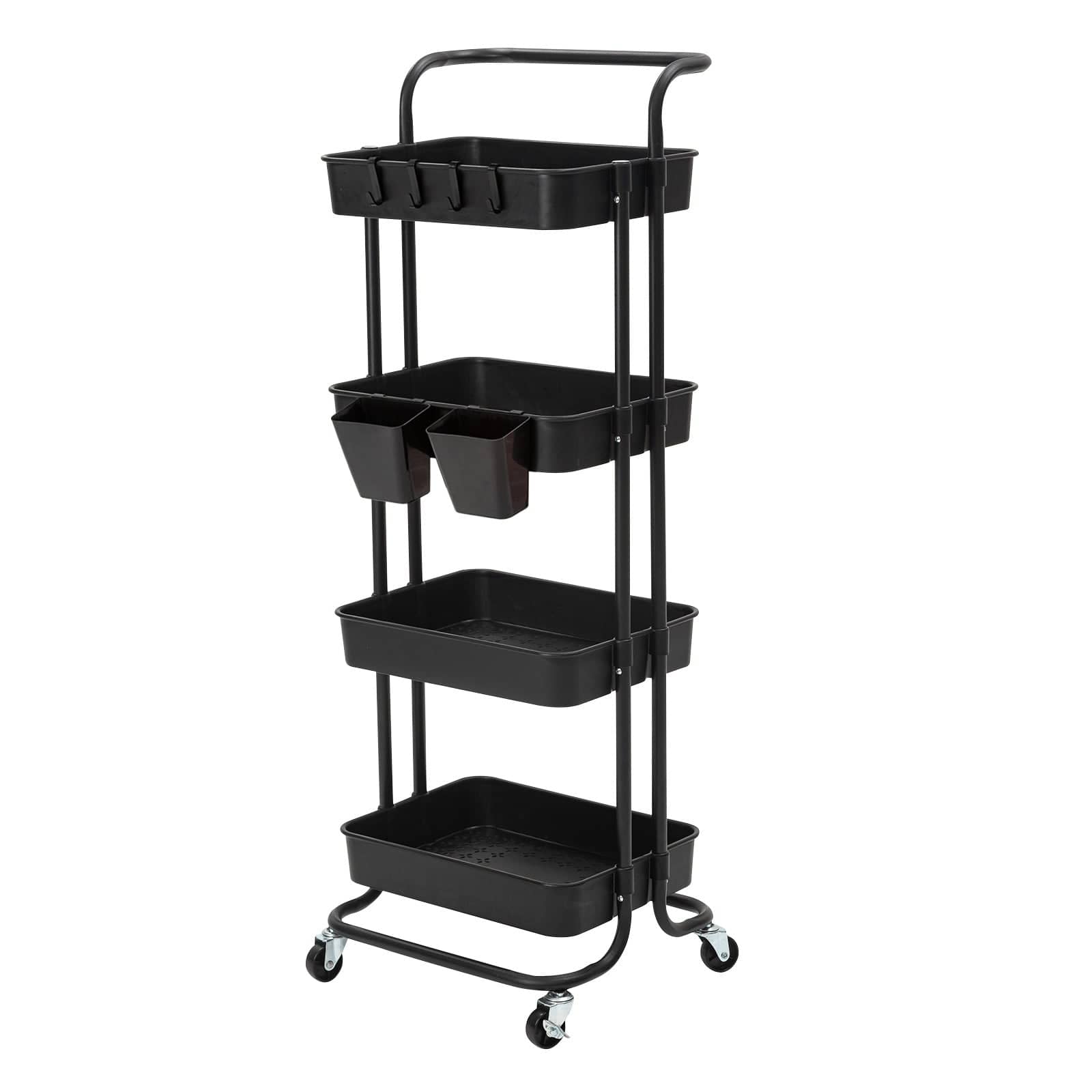 Kandoka 4 Tier Black Trolley Cart Storage Utility Rack Organiser Swivel Kitchen
