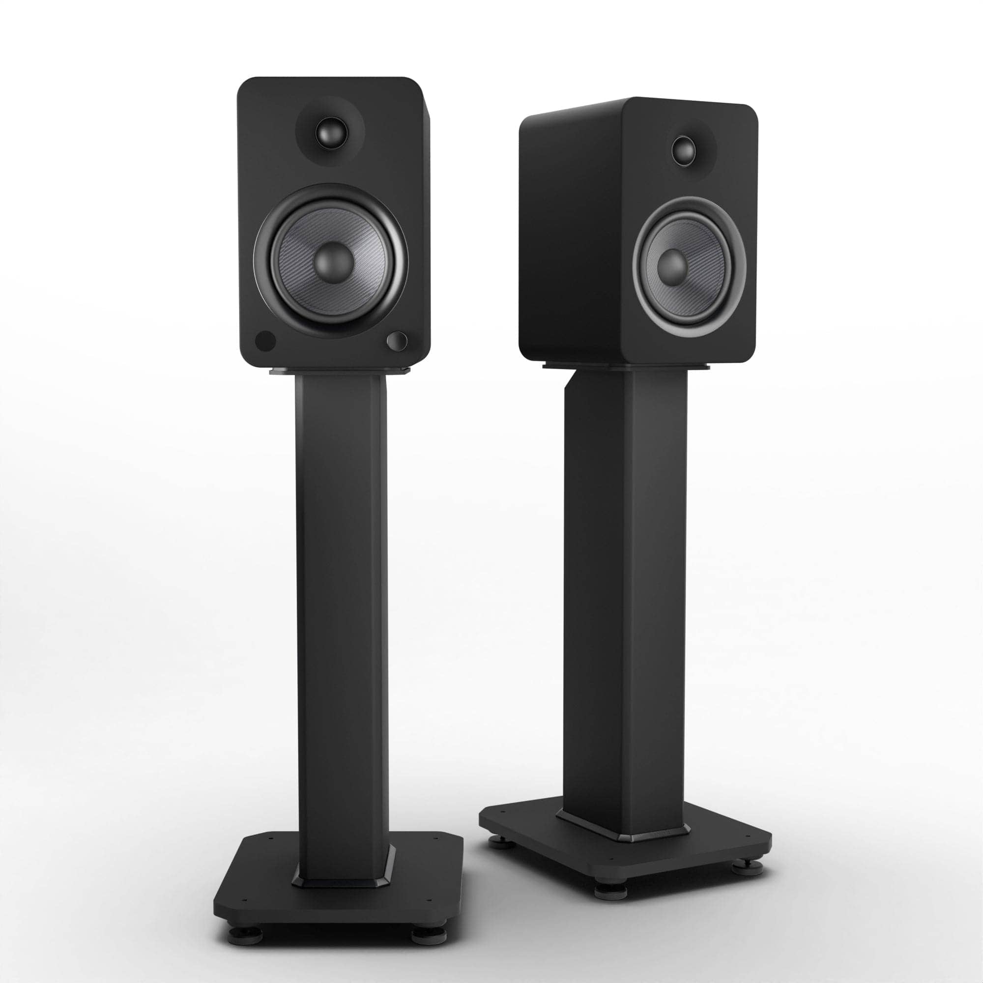 Kanto YU6 200W Powered Bookshelf Speakers with Bluetooth® and Phono Preamp - Pair, Matte Black with SX22 Black Stand Bundle