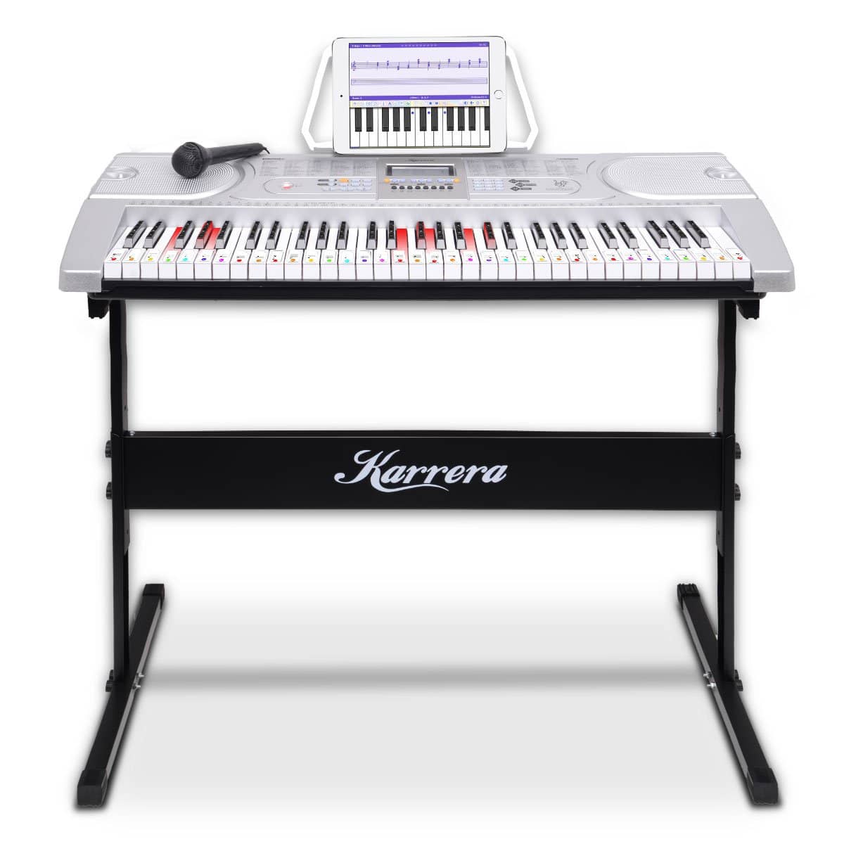Karrera 61 Keys Electronic LED Keyboard Piano with Stand - Silver