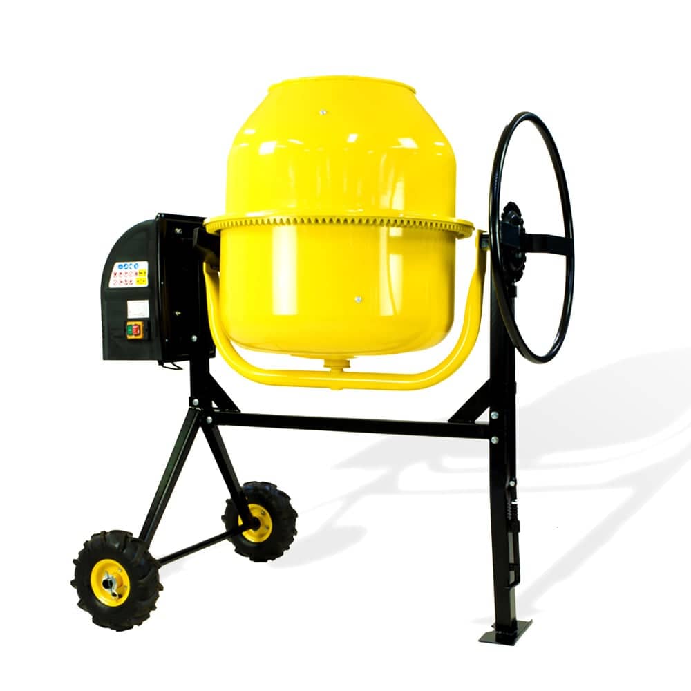 This Kartrite electric cement mixer has a 7.4 cubic ft 200 litre capacity bowl. With a flip of a switch it produces evenly mixed concrete. Equipped with an easy-load heavy duty steel drum, this mixer is also ideal of mixing sand and gravel. It has two 10 inch tractor treaded pneumatic wheels, which provide convenience for moving the machine around the job site.