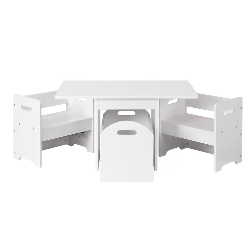 With its modular design, our Kids Table and Chair Set is fun, stylish and a great space saver. Everything is built to form up into each other into one compact unit.