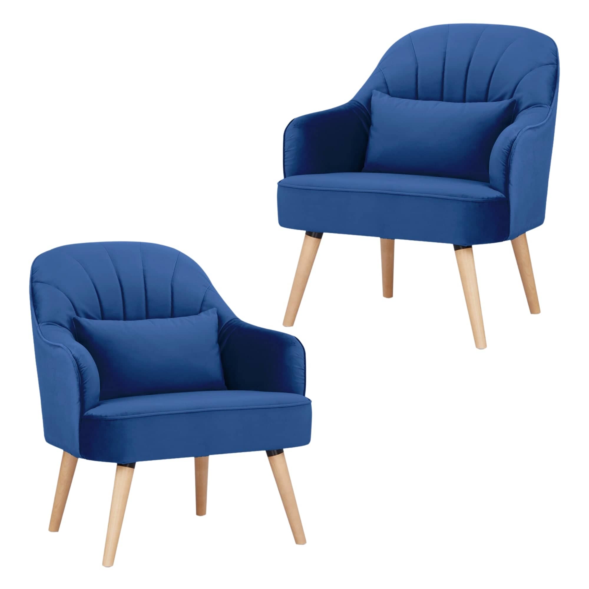 Keira Set of 2 Accent Sofa Arm Chair Fabric Uplholstered Lounge - Dark Blue