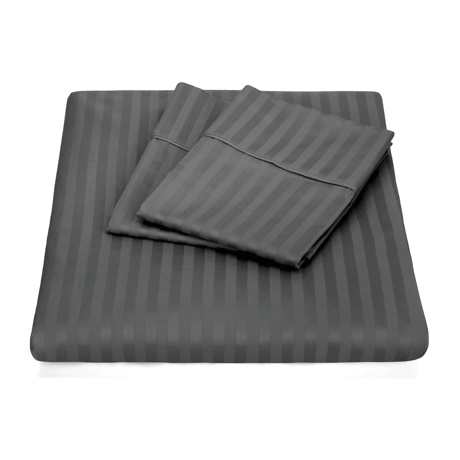 Kensington 1200 Thread Count 100% Egyptian Cotton Sheet Set Stripe Hotel Grade - Double - Charcoal
