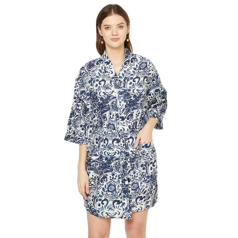A beautiful Frida Kahlo inspired kimono robe for a super price. Perfect as a kimono, robe or a kaftan. Made from super comfy light weight cotton cambric so treat yourself to ultimate comfort whether you are simply winding up at night, getting ready for the morning or just cozying up in your lounge to binge watch a movie on Netflix.
