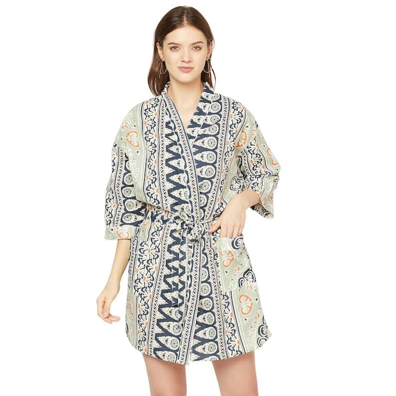 - Perfect use as a Kimono and Bathrobe. Can can be worn as a Kaftan, Cardigan or as a over sizes top over a dress.