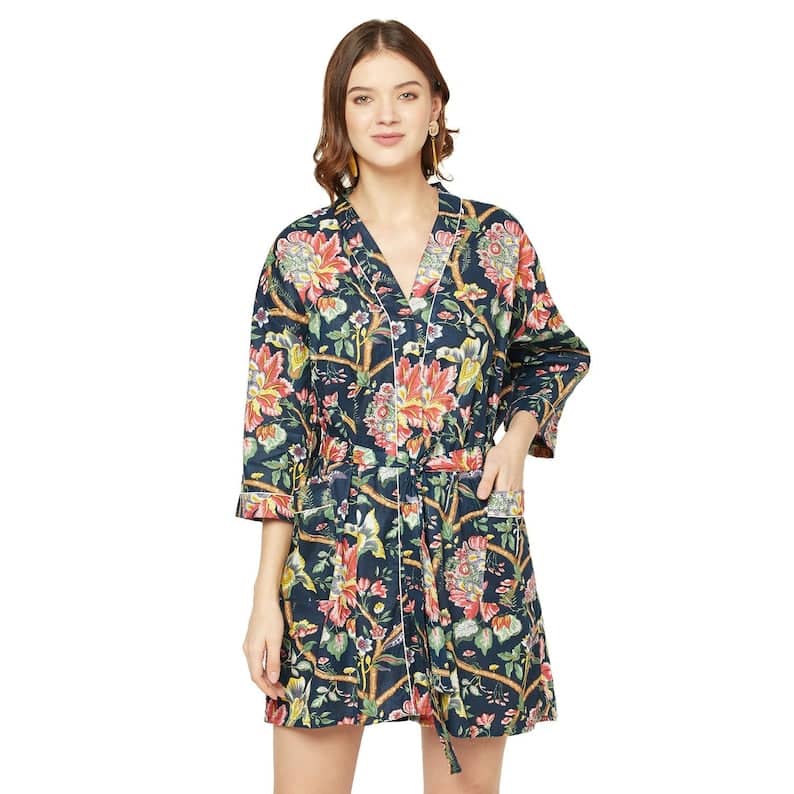 A beautiful Frida Kahlo inspired kimono robe for a super price. Perfect as a kimono, robe or a kaftan. Made from super comfy light weight cotton cambric so treat yourself to ultimate comfort whether you are simply winding up at night, getting ready for the morning or just cozying up in your lounge to binge watch a movie on Netflix.