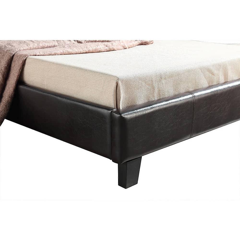 This bed from the expert craftspeople at Palermo measures 115 cm wide by 206 cm long, with a headboard that measures 88 cm tall (10cm leg & 78cm headboard) from top to bottom. It fits a king single mattress measuring 106 x 203 cm. The frame and headboard feature a durable PU Leather covering that's easy to clean and that will look great for many years to come. The headboard is padded for comfort while sitting up and reading or watching TV. An attractive stitched-together look and clean, simple lines make this bed frame a perfect complement to the modern bedroom. And the brown colour adds visual appeal without being ostentatious.