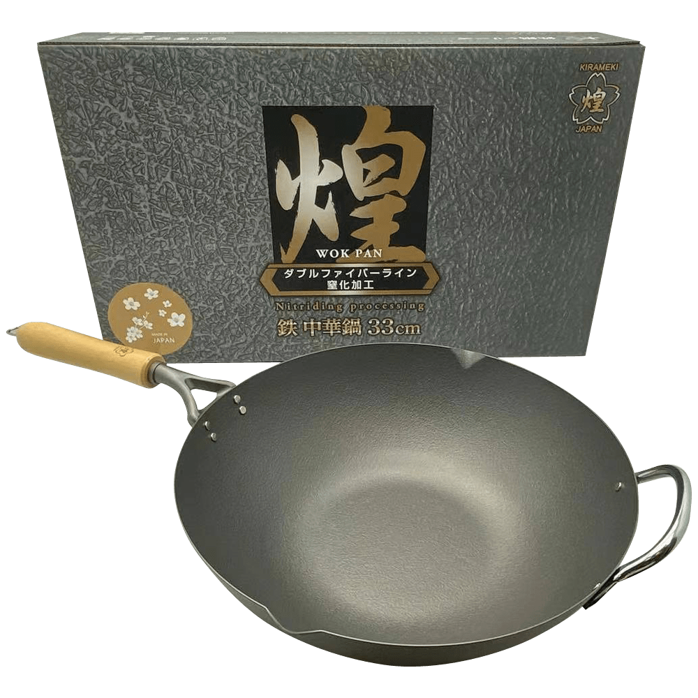 Kirameki Premium Cast Iron Nitriding Processing Stir-fry Wok (Made in Japan) - 33cm