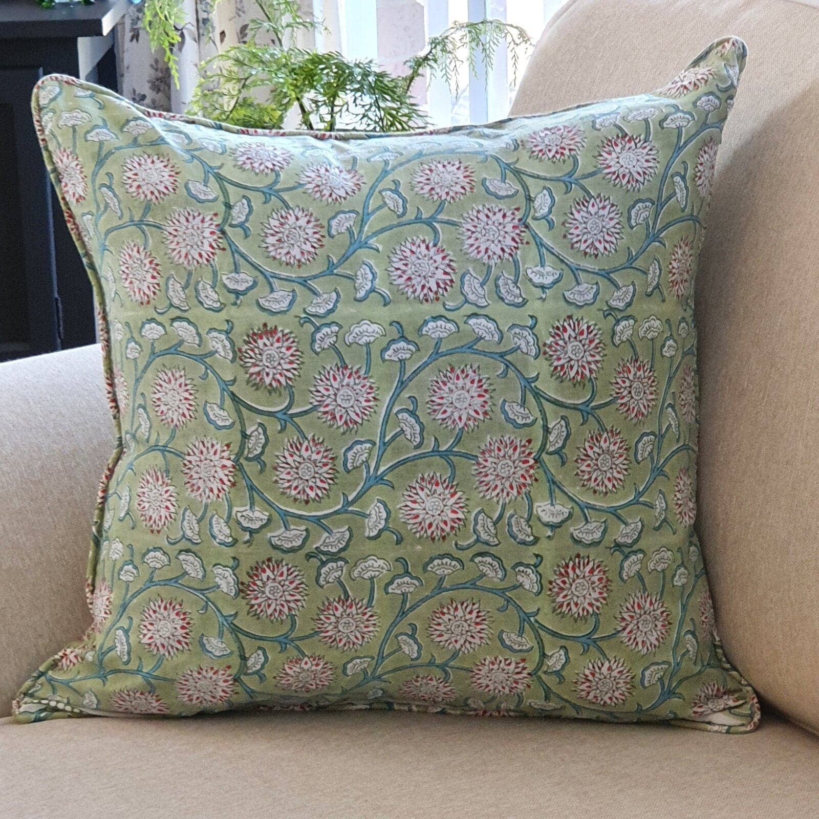 These soft cotton voile decorative cushions are designed in Melbourne and individually hand-block-printed by qualified skilled artisans. They are luxurious, sustainable, high quality, and durable, complementing a range of interior styles including French provincial, country cottage, Hamptons, coastal, contemporary and traditional.