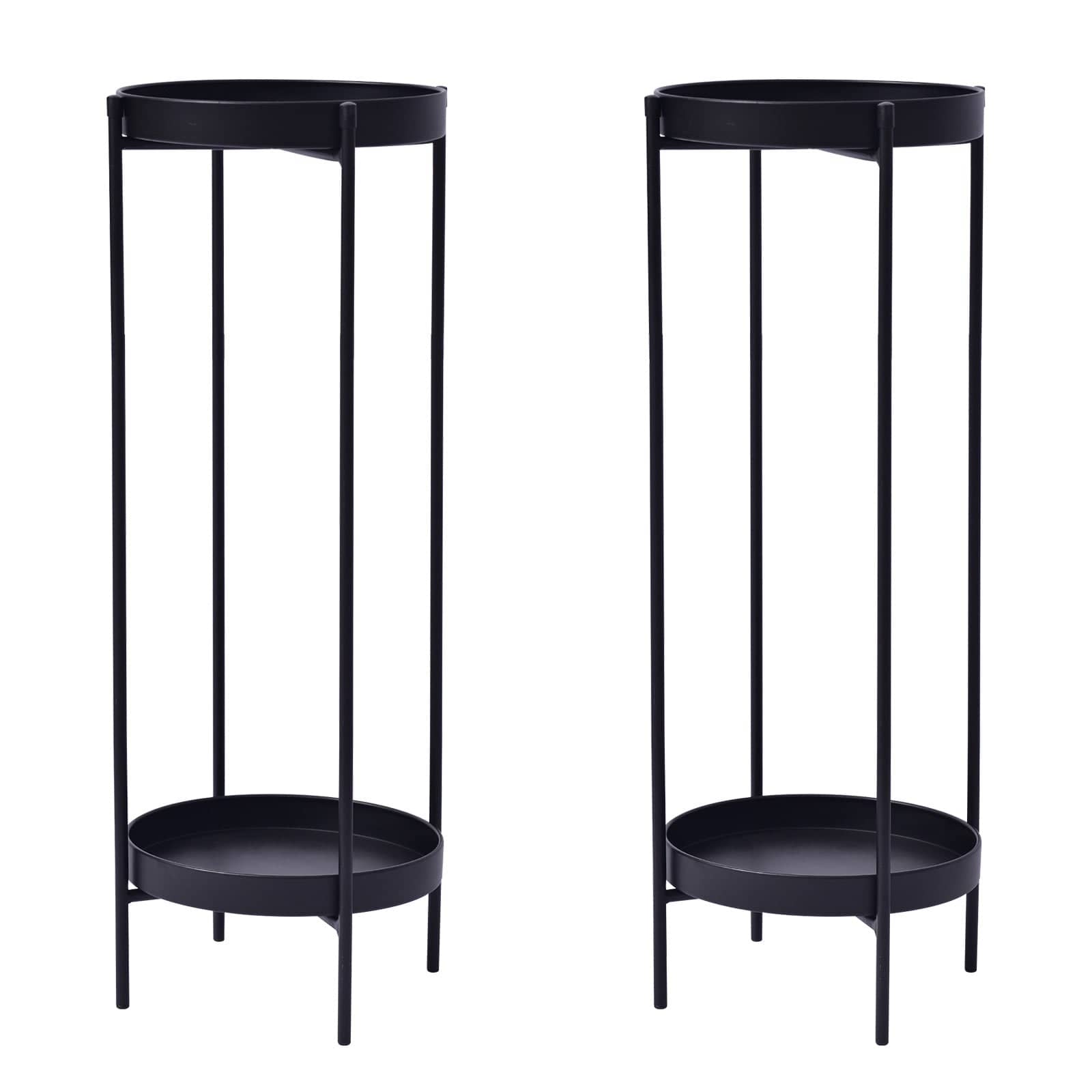La Bella 2 Set 80cm Black Plant Stand Planter Shelf Rack 2 Tier Steel