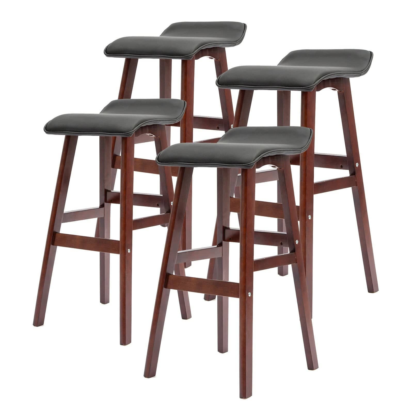 La Bella 4 Set Wooden Bar Stool 73cm Dara Leather Dining Chairs Kitchen - Black Brown