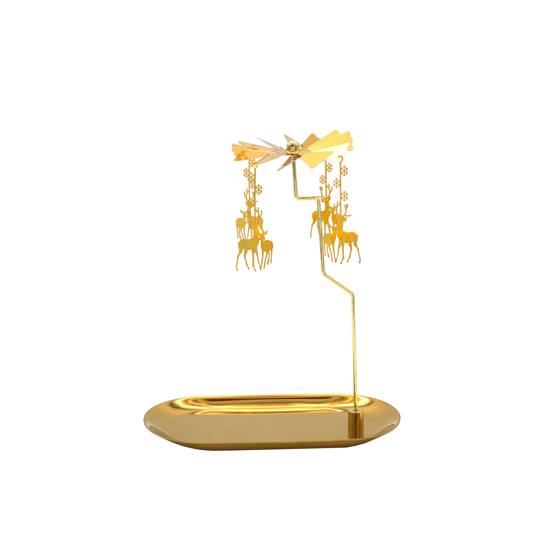 Crafted from gold color finished stainless steel, the Le Peagase Candle Tray has a rotatable design that it will automatically rotates when it gets heat from the candle and also rotates when the wind blows. This ultimate addition to shape a romantic atmosphere and character to any space in your home.