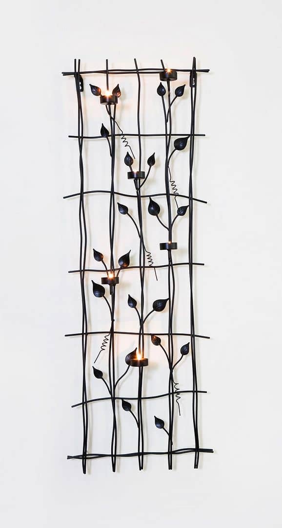 This elegant Leaf Style Black Tealight Candle Holders Wall Art Décor is the vogue way of adding appeal to any Room, redefining the appearance of your Home. Its unique and creative design will be a family favourite. This piece of art is crafted from 100% Wrought Iron. The product boasts a Leaf Design intricately placed within the frame, projecting great appeal. And further with the 6 Candle Holders, no Wall will ever be left in the dark!