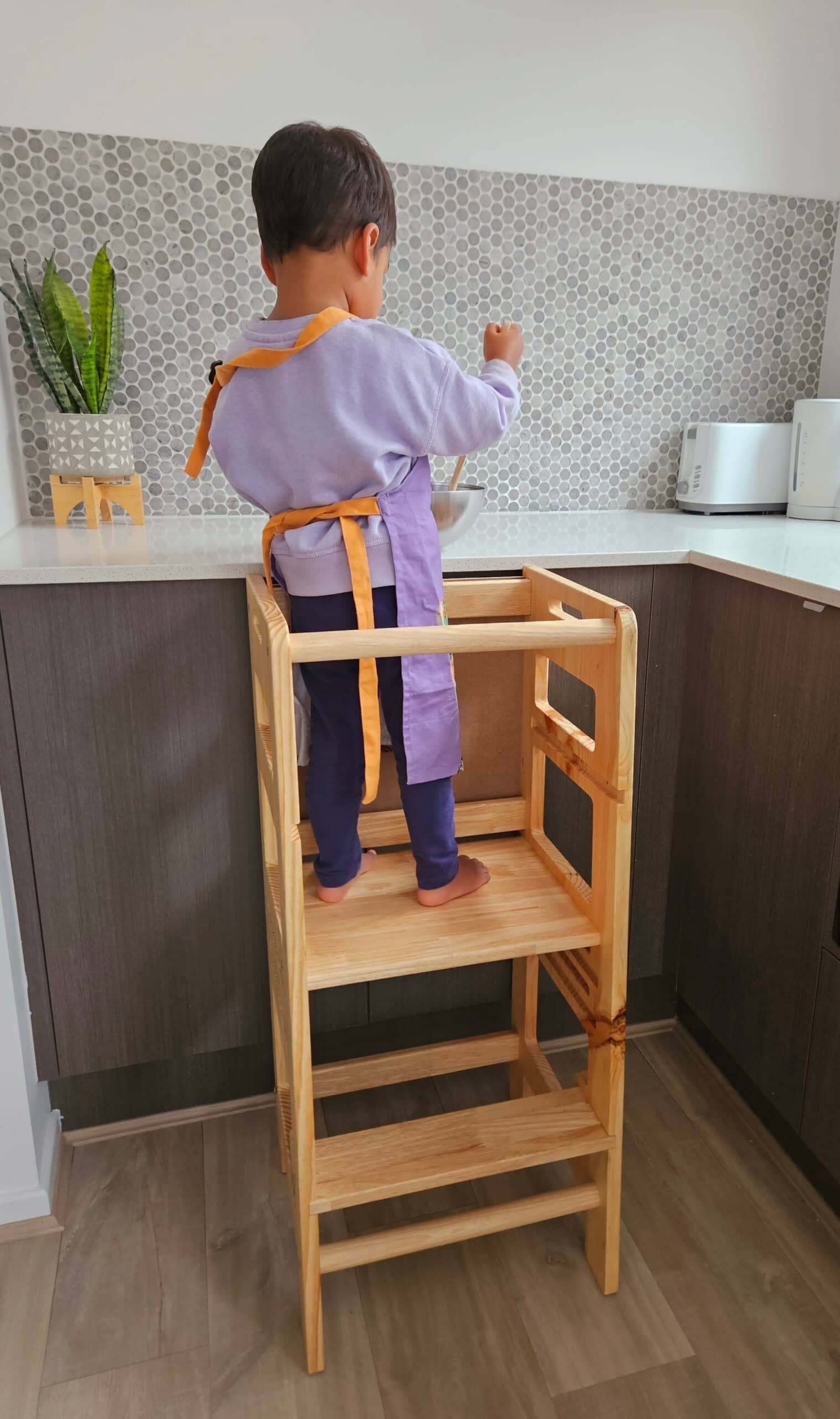 Introducing our fantastic learning tower for kids, a must-have accessory to empower little helpers and encourage creativity through play. This versatile learning tower is designed to provide a safe and sturdy platform, allowing children to actively engage in household activities and foster their independence. Our tower also comes with a built-in whiteboard and it also includes a convenient clipboard, allowing children to secure sheets of paper and draw or write with ease. This learning tower can also be turned into a high chair (the highest level is the seat level) for feeding too. As they reach new milestones, the tower adapts to accommodate their changing needs, allowing them to explore their world at every stage of development.
