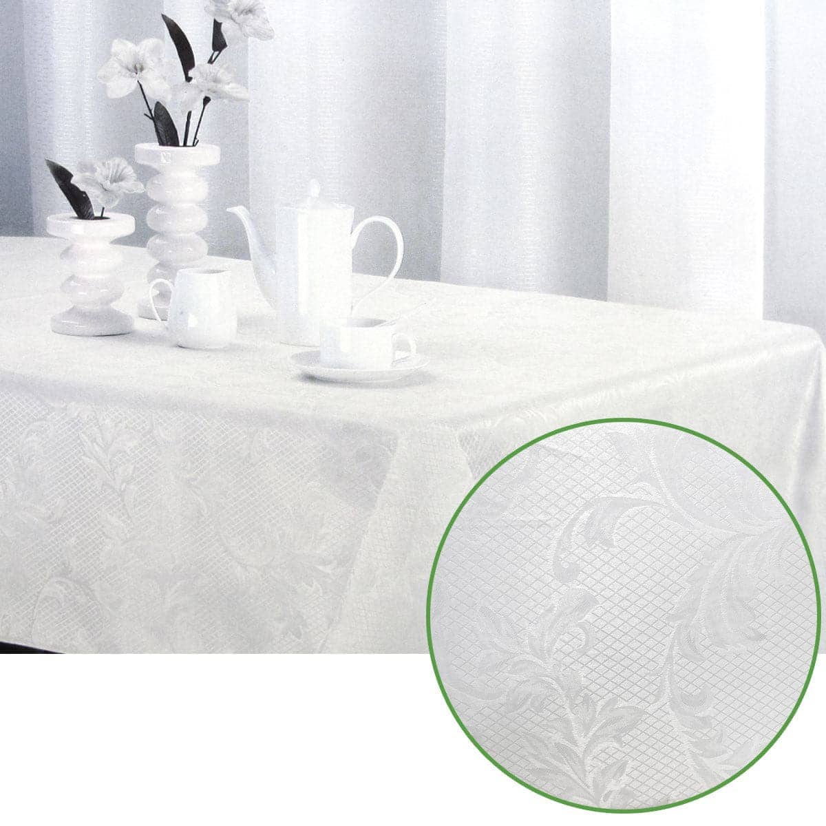 This Leaves Off White Luxury Jacquard Tablecloth 145 x 225 cm can make your dining table look perfect for almost every occasion. Tablecloths are good option to add decorative touch to your table while protecting it from scratches and stains. This tablecloth features a stunning foliage jacquard design in soft colour tone that will add a layer of unique pattern to complete the look of your dining space. It is made from easy care and stain resistant polyester fabric with long lasting durability for long lasting use. 145cm x 225cm - 8 to 10 Seaters.