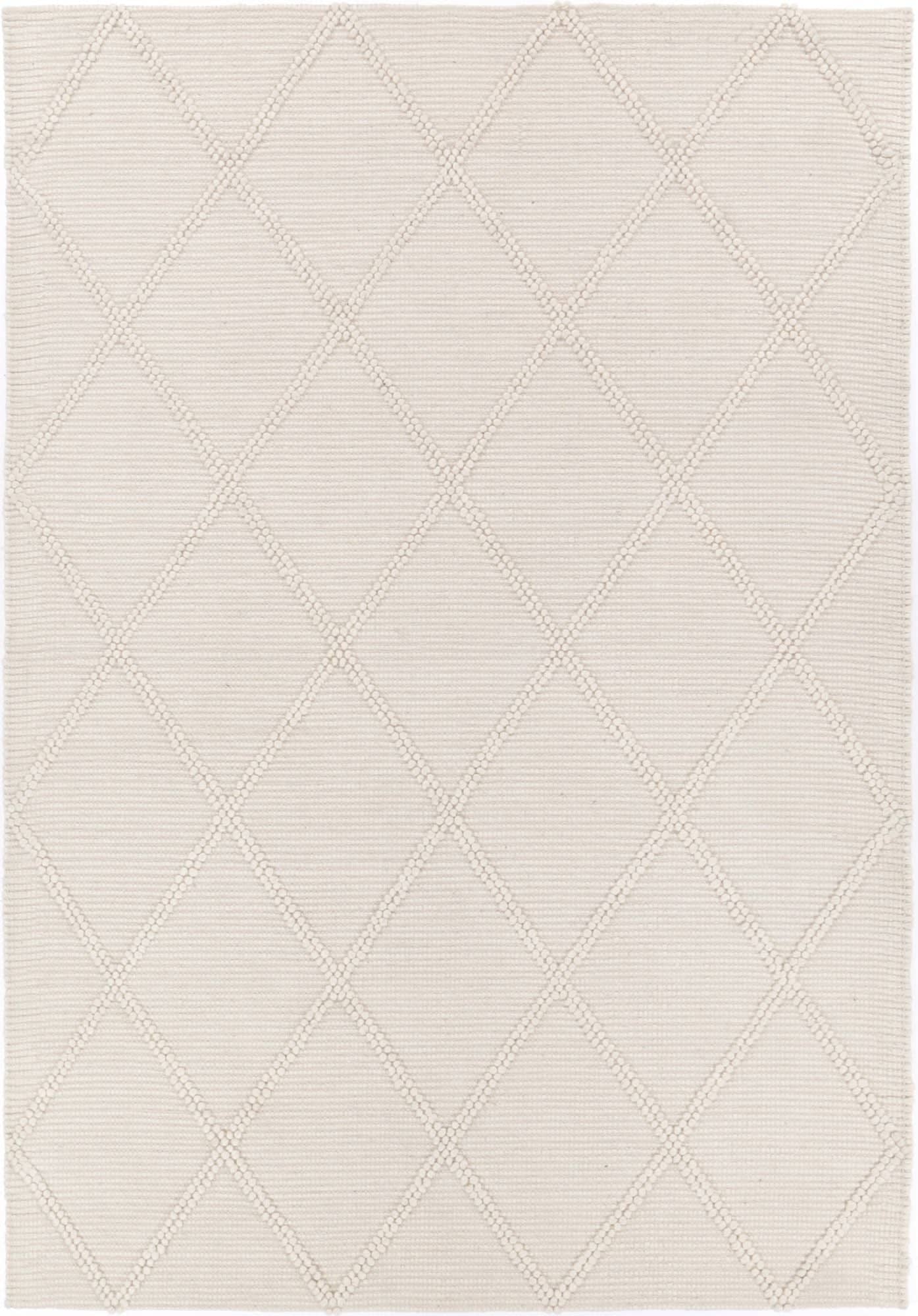 Complete any setting with this handmade rug. Soft, lustrous wool yarns are hand-tufted to create contrasting textures including oversized loops and flat surfaces that are rich in dimension; beautifully styled with classic geometric patterns. Crafted using a 70% Wool and 30% Polyester blend, this rug will accent any space with its calm and neutral colour palette making it the perfect choice to add the finishing touch to any room in the house.