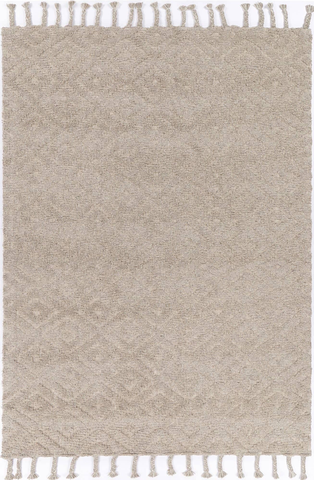 Complete any setting with this handmade rug. Soft, lustrous wool yarns are hand-tufted to create contrasting textures including oversized loops and flat surfaces that are rich in dimension; beautifully styled with classic geometric patterns. Crafted using a 70% Wool and 30% Polyester blend, this rug will accent any space with its calm and neutral colour palette making it the perfect choice to add the finishing touch to any room in the house.