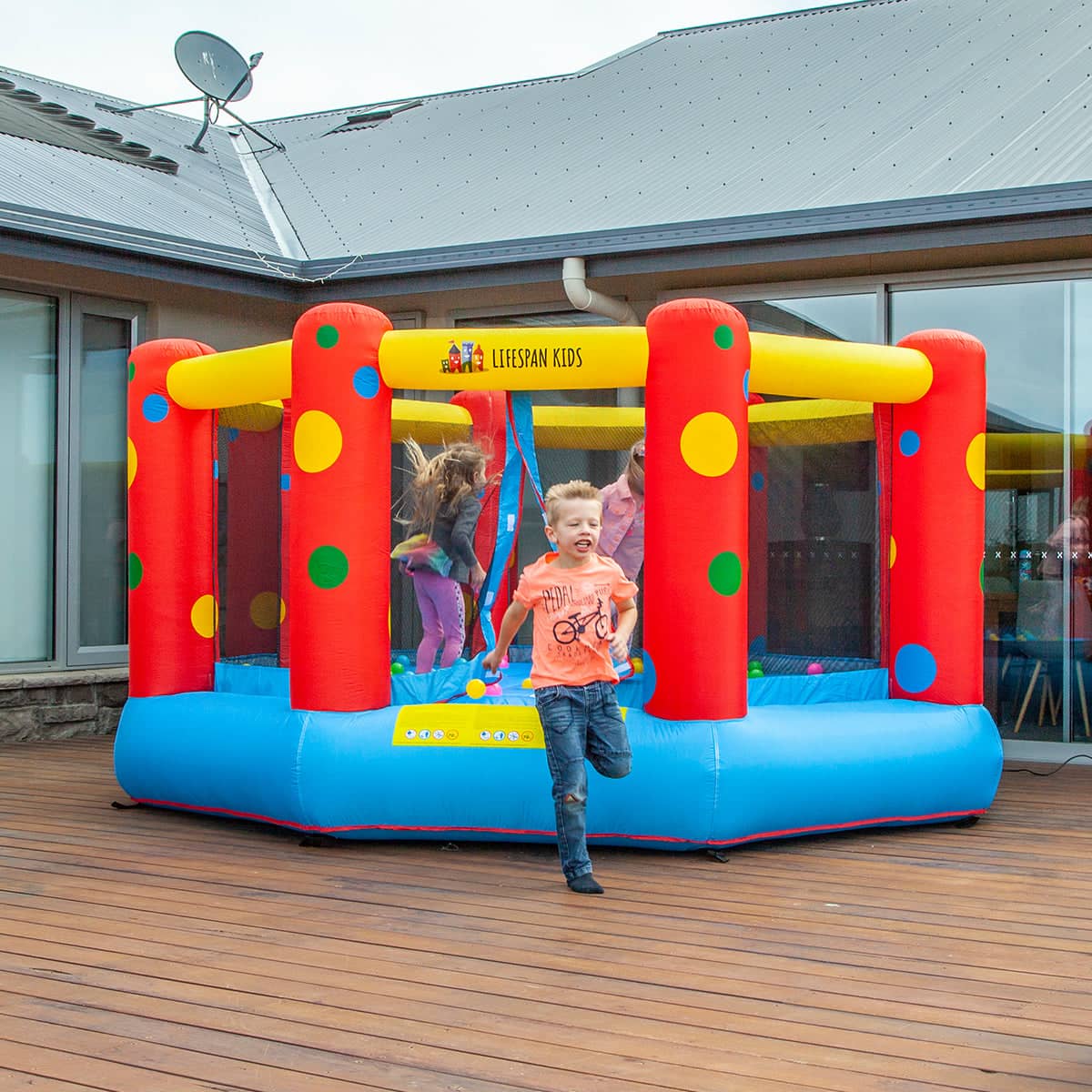 Every party is epic with the Airzone 8 12ft Bouncer inflatable and portable trampoline. Inflating within minutes, the Airzone 8 offers a 12ft wide jumping area with safety net and Velcro entrance. Little jumpers will stay active with a basketball hoop and a number theme for mental stimulation.