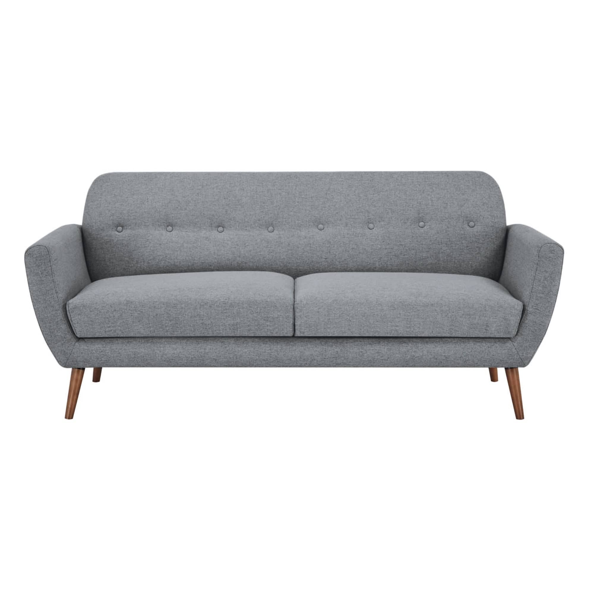 This comfortable 3-seater sofa in light grey is a visual delight in itself. The Scandinavian-style furniture is upholstered in a plush upholstery made of high-performance 100% polyester. The upholstery has a smooth fit due to the intact tailoring on the frame. The solid pine wood and plywood frame make the sofa light and highly durable. The durable frame with seating support made of thick bonded foam, fabric, and high-tensile S springs ensures heavenly comfort when you relax on it. Tapered wooden legs in nature wood colour give the furniture a strong base. The sofa is easy to assemble. The long-lasting furniture comes with a 1-year warranty.
