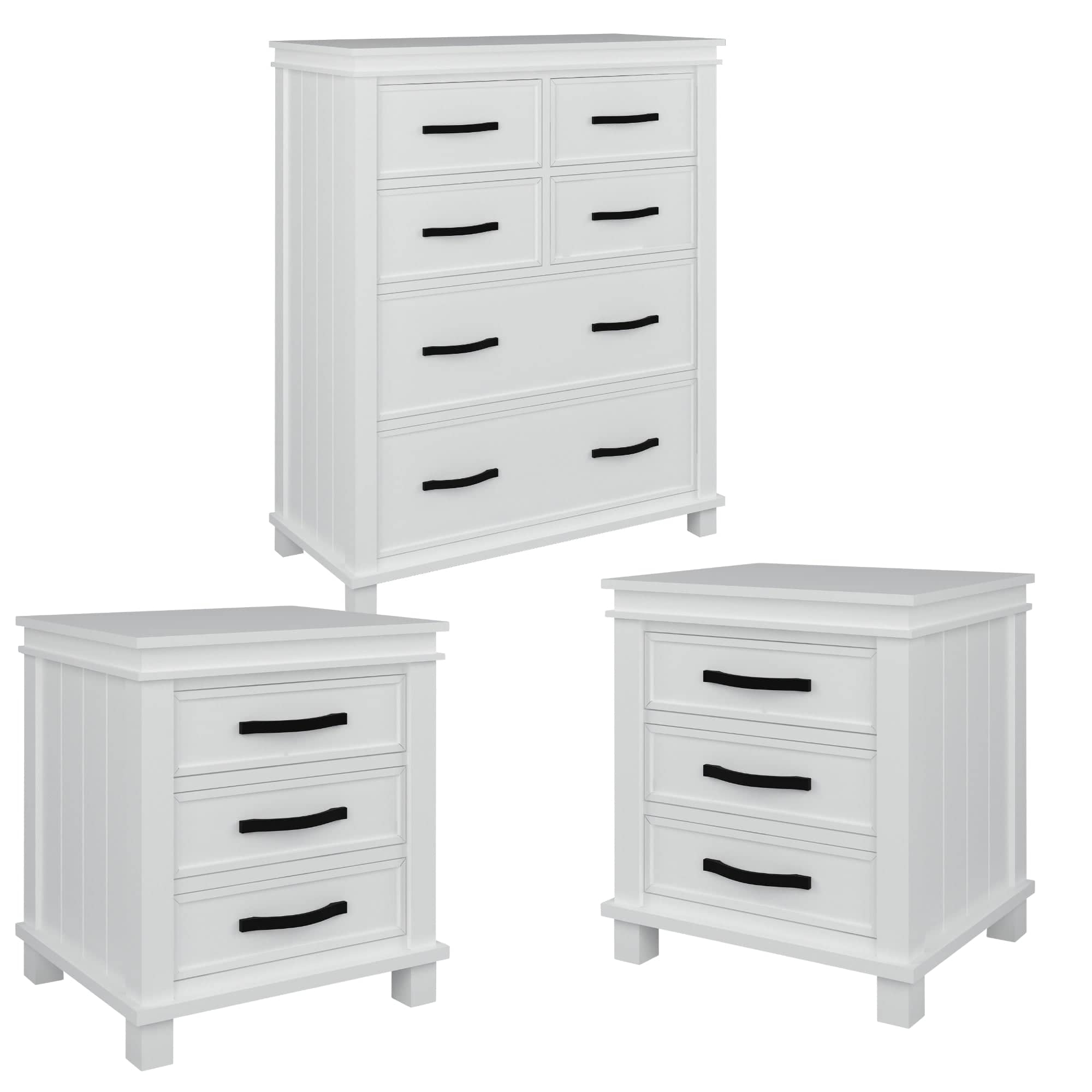 Lily Bedside Tallboy 3pc Bedroom Set Nightstand Storage Cabinet - White