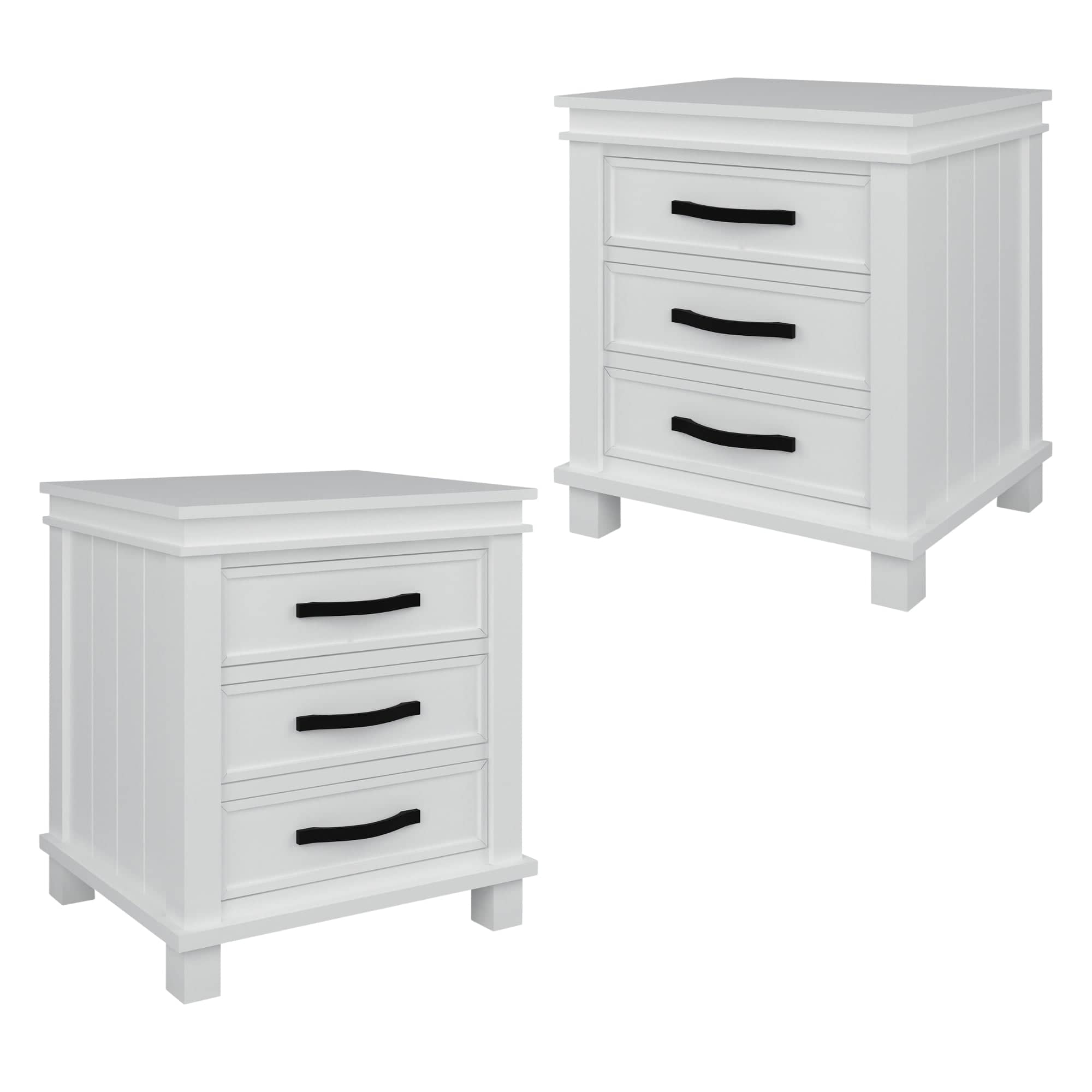 Lily Set of 2 Bedside Tables 3 Drawers Storage Cabinet Nightstand - White