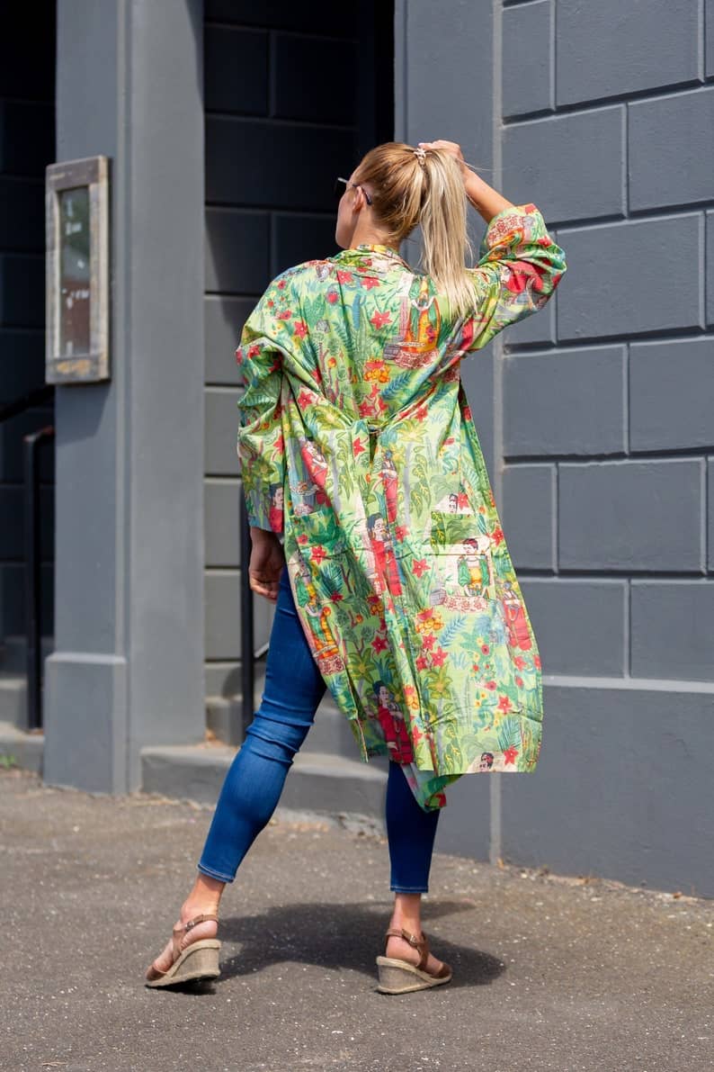 A beautiful Frida Kahlo inspired kimono robe for a super price. Perfect as a kimono, robe or a kaftan. Made from super comfy light weight cotton cambric so treat yourself to ultimate comfort whether you are simply winding up at night, getting ready for the morning or just cozying up in your lounge to binge watch a move on Netflix.