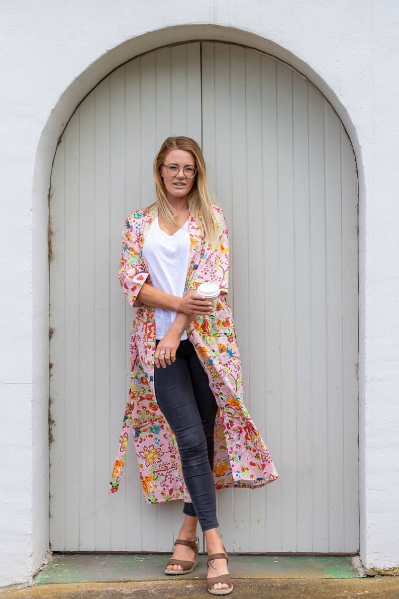 A beautiful Frida Kahlo inspired kimono robe for a super price. Perfect as a kimono, robe or a kaftan. Made from super comfy light weight cotton cambric so treat yourself to ultimate comfort whether you are simply winding up at night, getting ready for the morning or just cozying up in your lounge to binge watch a move on Netflix.