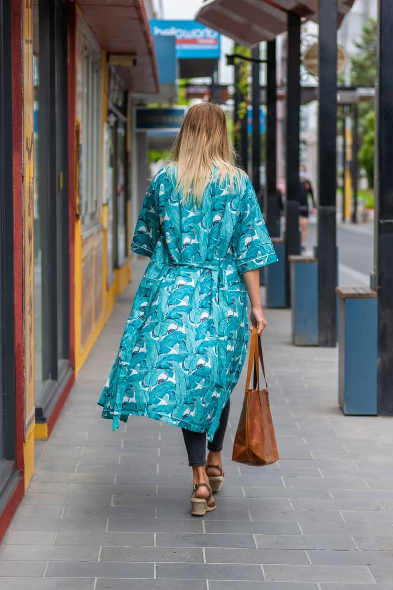 A beautiful Frida Kahlo inspired kimono robe for a super price. Perfect as a kimono, robe or a kaftan. Made from super comfy light weight cotton cambric so treat yourself to ultimate comfort whether you are simply winding up at night, getting ready for the morning or just cozying up in your lounge to binge watch a move on Netflix.