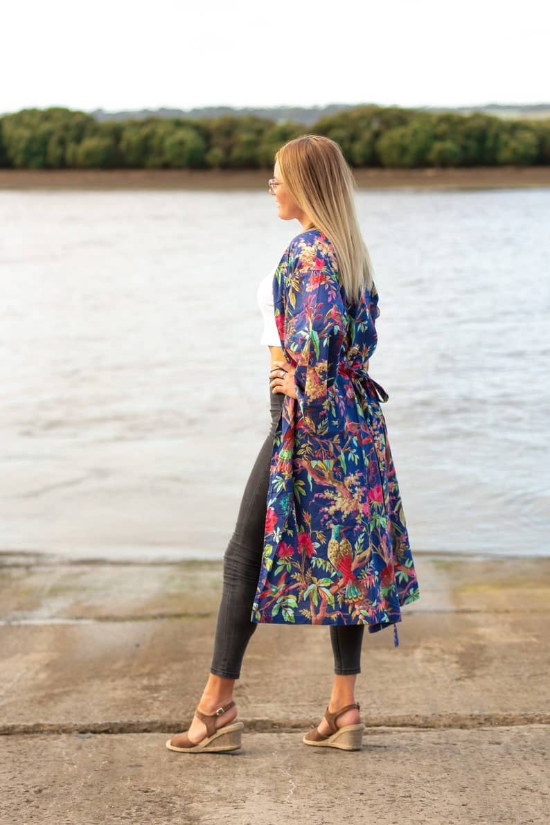 A beautiful Frida Kahlo inspired kimono robe for a super price. Perfect as a kimono, robe or a kaftan. Made from super comfy light weight cotton cambric so treat yourself to ultimate comfort whether you are simply winding up at night, getting ready for the morning or just cozying up in your lounge to binge watch a movie on Netflix.