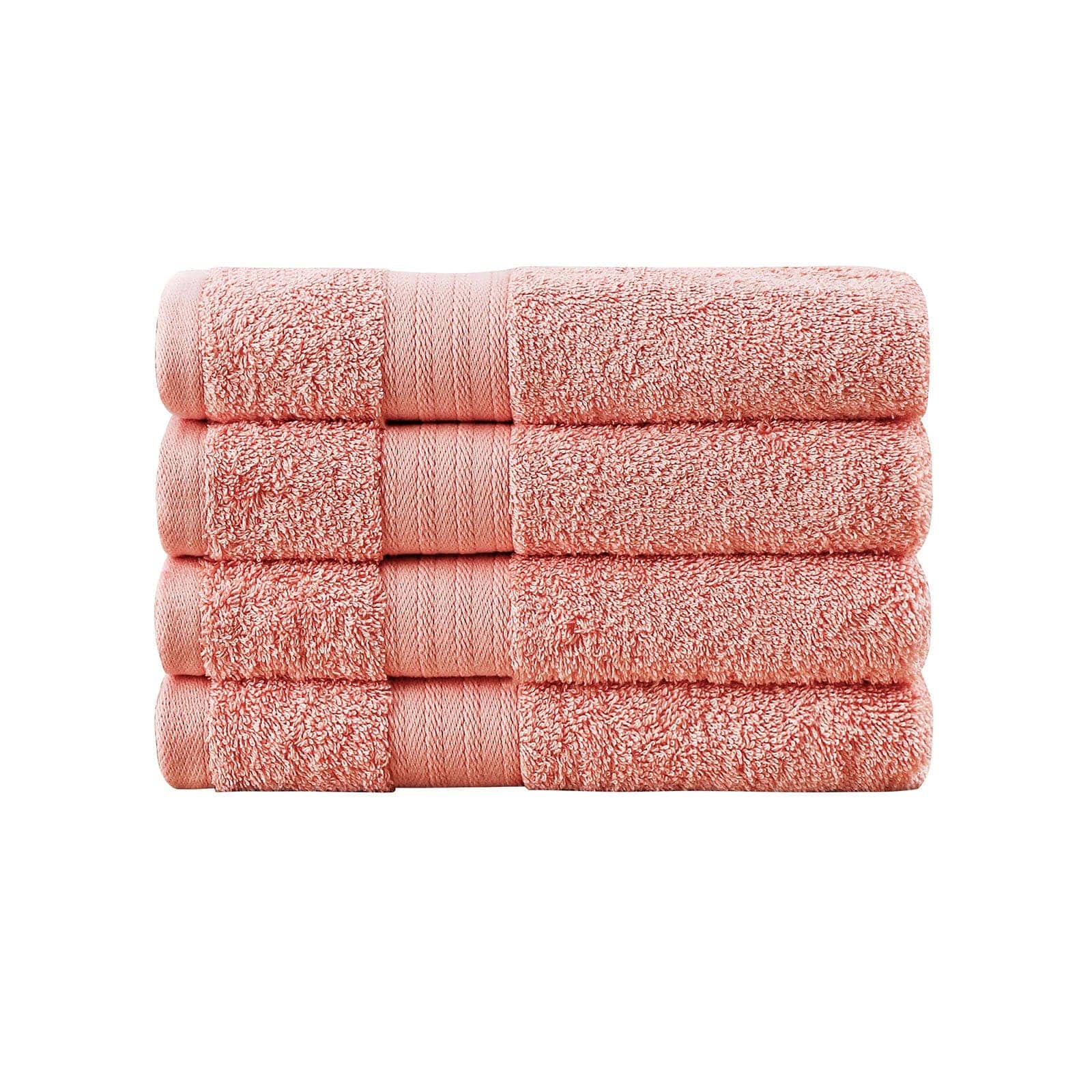 Linenland Bath Towel 4 Piece Cotton Hand Towels Set - Coral