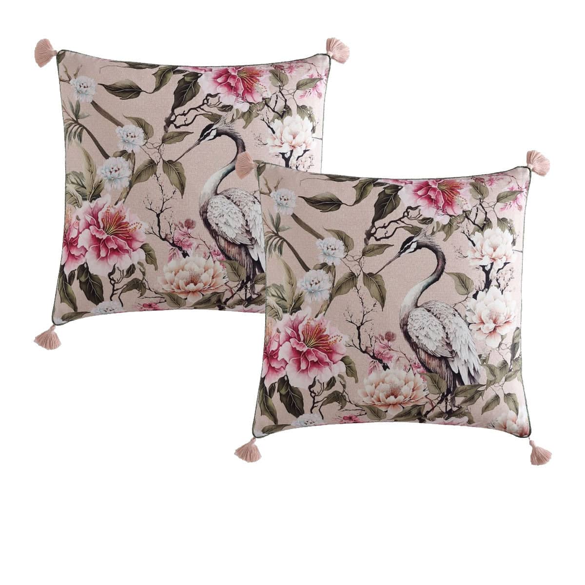 Lisha Rose 250TC 100% Cotton Sateen Quilt Cover Set by Logan and Mason uses hand painted oriental blooms and traditional cranes. The eye is drawn across the rambling flowers, featuring hummingbirds, delicate fuchsias and peony blooms in rose, white, and ivory colour hues. The pink blooms are highlighted by the lush green foliage and pastel ground. The ground and reverse use a traditional oriental style geometric. Enhance the overall appearance with the coordinating European pillowcases available for an additional cost.