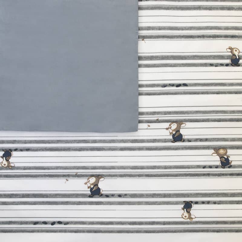 Logan QCS (denim): The Logan Quilt Cover Set contrasts classic horizontal stripeswith a plain dyed reverse and texture peppered throughout; playful and unclutteredpatterns create a healthy combination.1 x Quilt Cover 2 x PillowcasesPakistan